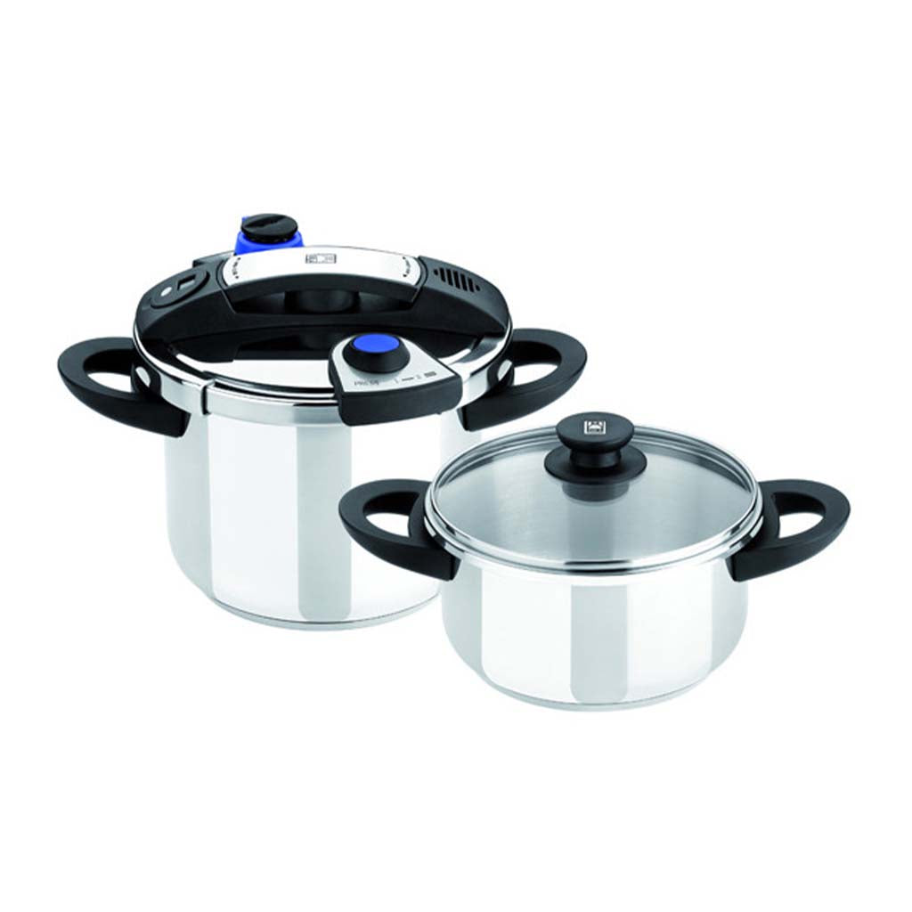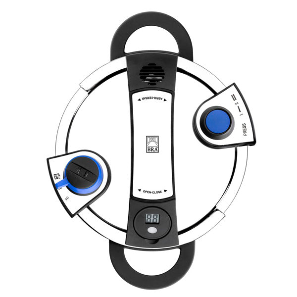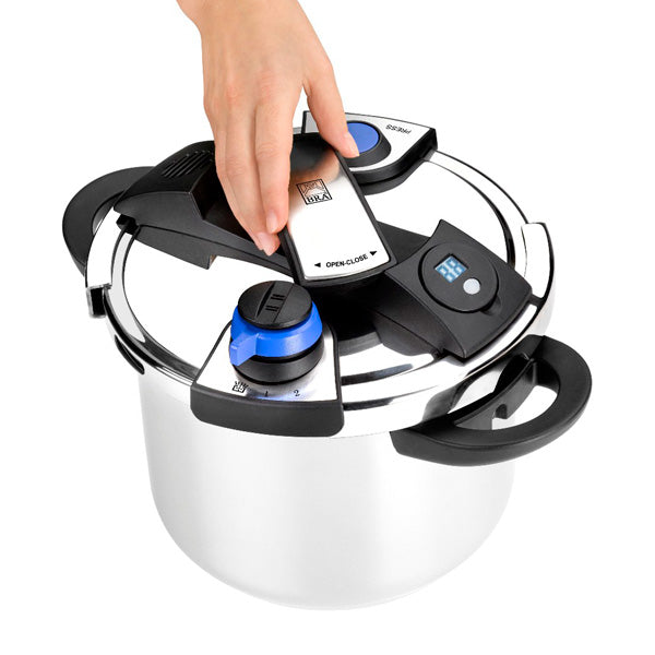 Es verfügt über zwei Kochprogramme, 3 Drucksicherheitssysteme und 1 Öffnungsblockiersystem und entspricht den CE-Vorschriften.