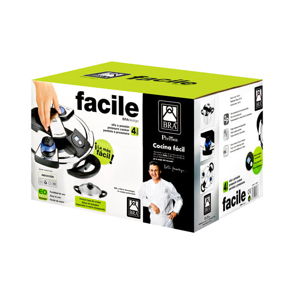 Der Facile-Schnellkochtopf bietet superschnelles Kochen mit sehr einfacher Bedienung und einem patentierten Öffnungssystem zum Schließen des Deckels mit minimalem Kraftaufwand und maximaler Sicherheit.