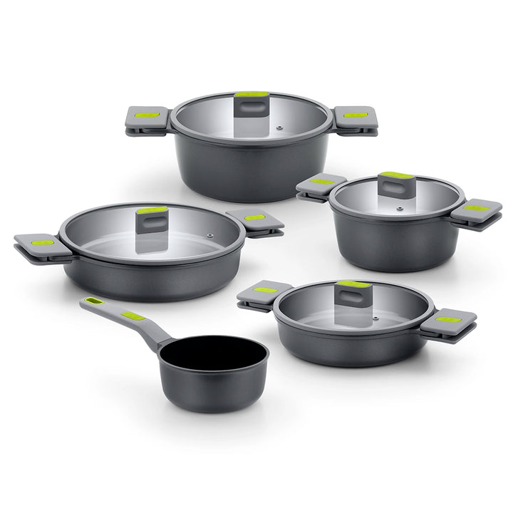 Professional 9-Piece Cookware Set with Baking Dish and Glass Lids