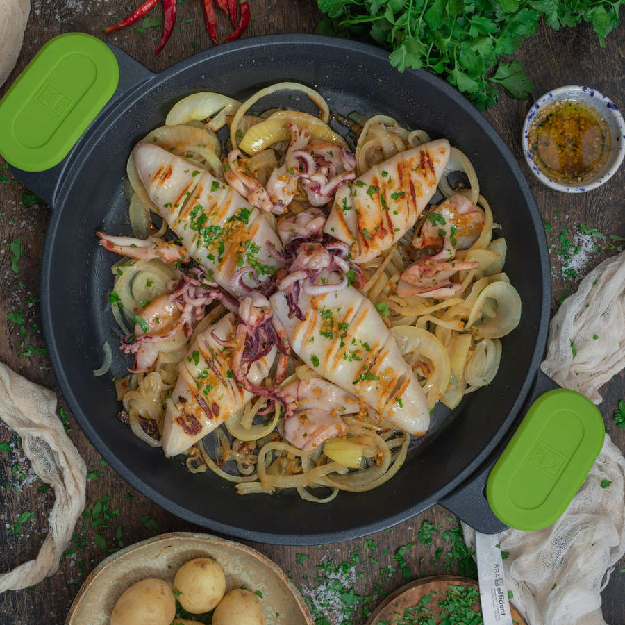 It's a very versatile cookware set thanks to its components, which allow you to create all kinds of recipes, from stews over the fire to roasting all kinds of meat or fish in the oven, making a risotto, and even making delicious sweet recipes.