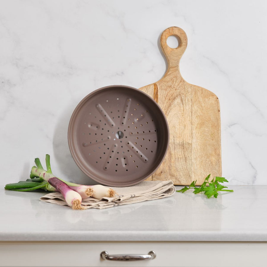 Versatility and smart design come together in the Compac Pro steamer and baking pan. Designed to fit seamlessly into the stackable collection, it saves space without sacrificing functionality. Its compatibility with tall and short saucepans from the same line makes steaming easy, preserving food's flavor and nutrients. Plus, its stackable design ensures efficient storage, optimizing every corner of the kitchen.