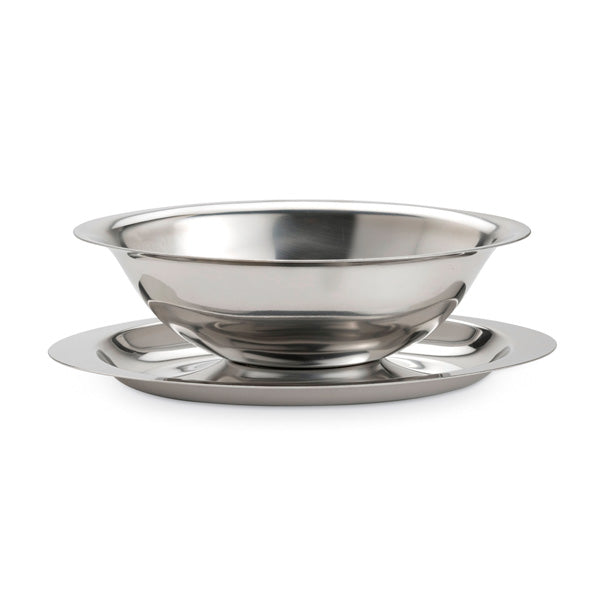 Professional-quality sauce dish from the Latina series, ideal for serving sauces directly at the table and made from 18/10 stainless steel with a polished shine.
