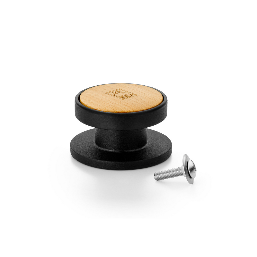 - Pomo de baquelita con insert de madera de haya muy ergonómico para un tacto agradable y seguro.