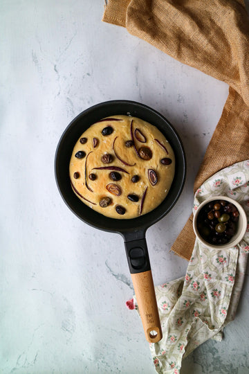 Schiacciata toscana de aceitunas y cebolla morada
