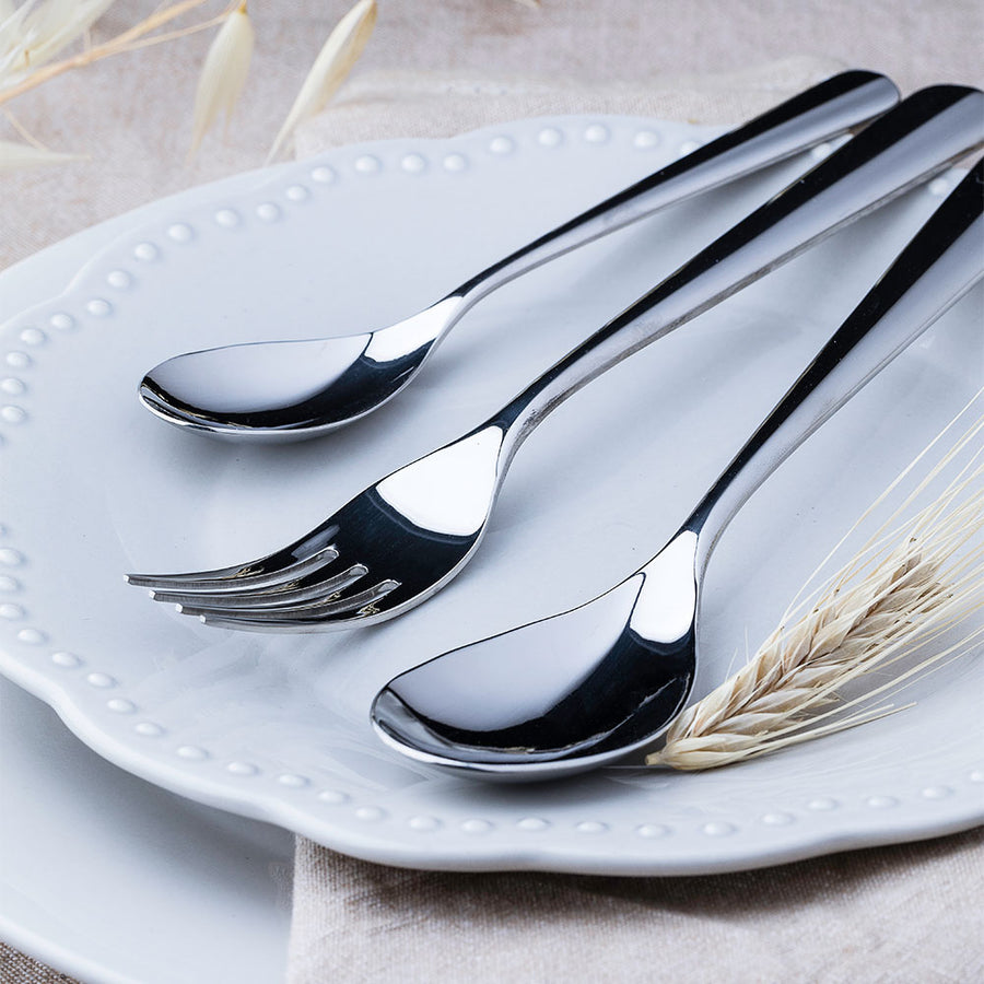Cubertería Torino fabricada en acero inoxidable 18/10 con un diseño contemporáneo que aúna practicidad y elegancia en cualquier mesa.