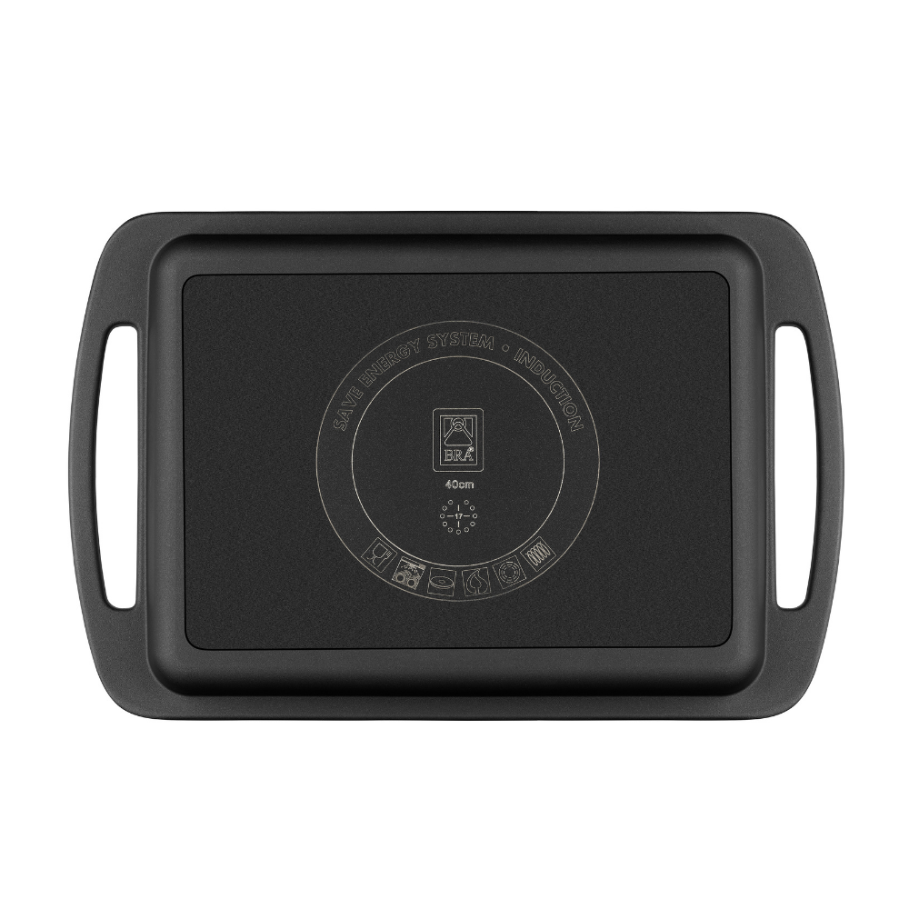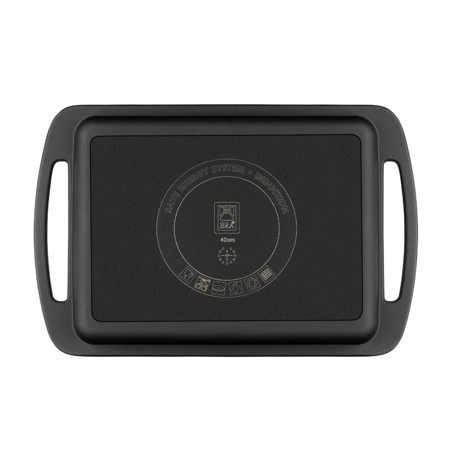 La parrilla lisa Premiere es ideal para cocinar los alimentos de forma sana y sencilla, tanto en el fuego como en el horno. Su amplio fondo difusor es ideal para preparar al mismo tiempo la carne o el pescado y la guarnición con la que se quiera acompañar. De forma rápida, sin apenas grasas y sin que se pegue nada, saborearás unas comidas y cenas de lo más deliciosas. Pincelando la parrilla con el aceite habitual o bien con uno aromatizado, podrás darle un punto diferente a tus recetas en cada ocasión. Platos sabrosos y saludables con un toque especial como unas rodajas de merluza con unos espárragos verdes y un poco de aceite de gambas, un entrecot de ternera con las setas que prefieras y aceite de trufa o de boletus, una parrillada de verduras variadas con aceite de ajo, unos calamares con unas láminas de calabacín con aceite de oliva o unos mejillones abiertos en la parrilla con un poco de pimienta. Su superficie lisa te permite utilizarla incluso como bandeja para hornear tartas de hojaldre, galletas, pizzas, empanadas o una focaccia de lo más apetitosa. Recetas sanas y deliciosas en una parrilla muy versátil, robusta y duradera que además se limpia muy fácilmente.