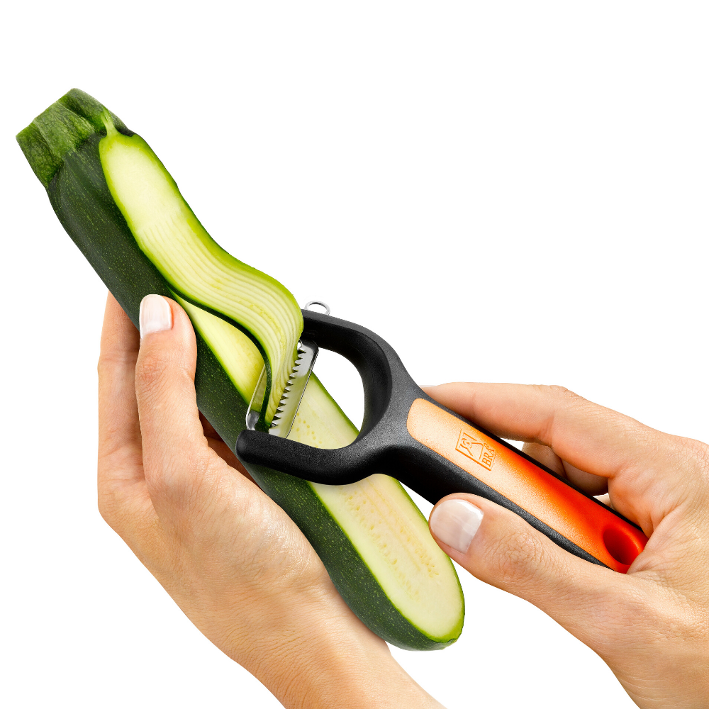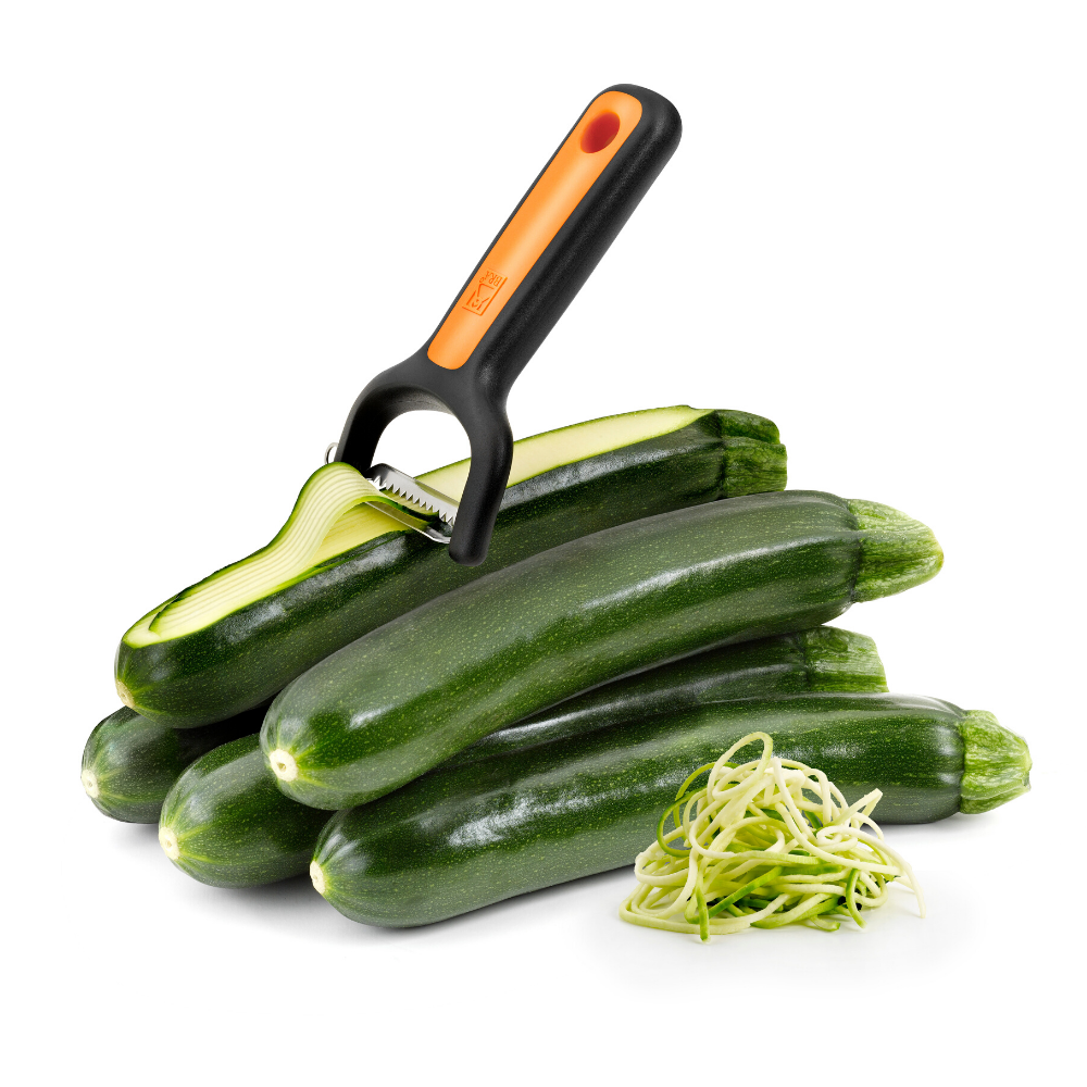 El pelador para juliana está diseñado en forma de Y. Dispone de una afilada cuchilla dentada de acero inoxidable para un corte preciso y eficiente. Es una herramienta perfecta para cortar en juliana o tiras todo tipo de frutas y verduras como el calabacín o la zanahoria. También es muy práctico para cortar la piel de los cítricos, como naranjas o limones.