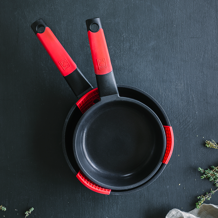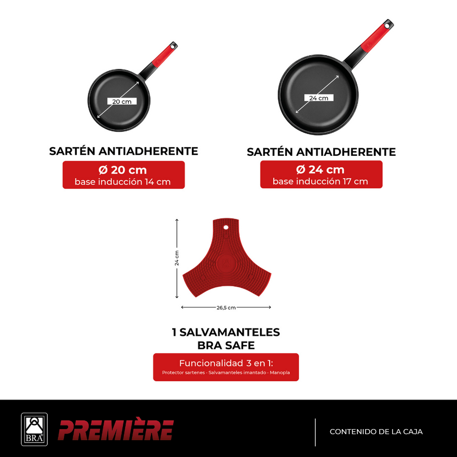 - Lote con sartenes de 20 y 24 cm y un protector Bra Safe.