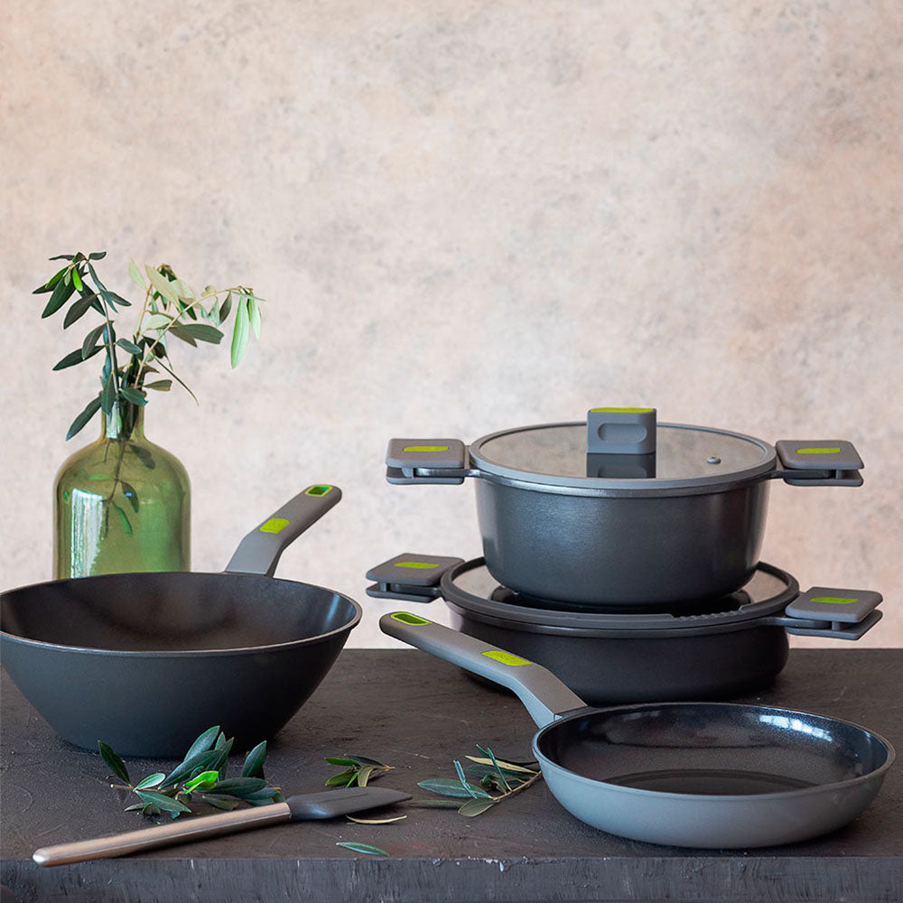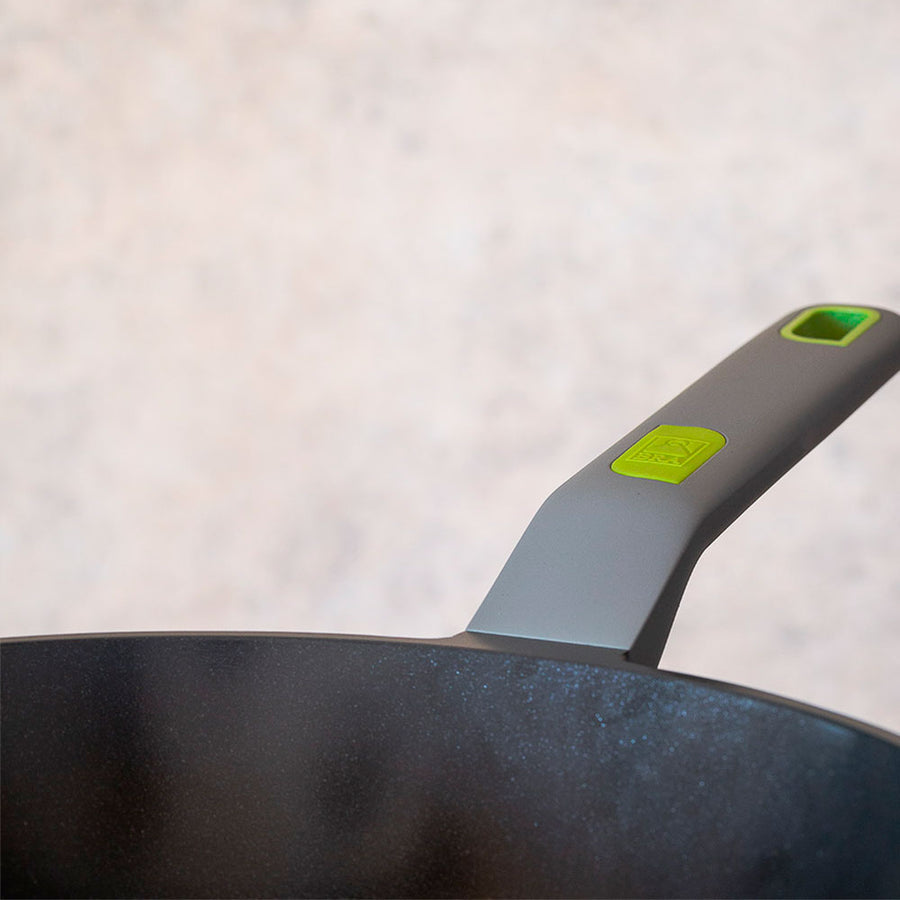El wok de la colección Life está fabricado con aluminio fundido 100% reciclado certificado, de máxima calidad y fortaleza, generando un menor impacto medioambiental y contribuyendo a la economía circular. Es un wok con un menor peso, pero igualmente robusto a pesar de su ligereza, lo que lo hace ideal para el día a día, especialmente para las personas con dificultades para levantar utensilios más pesados.